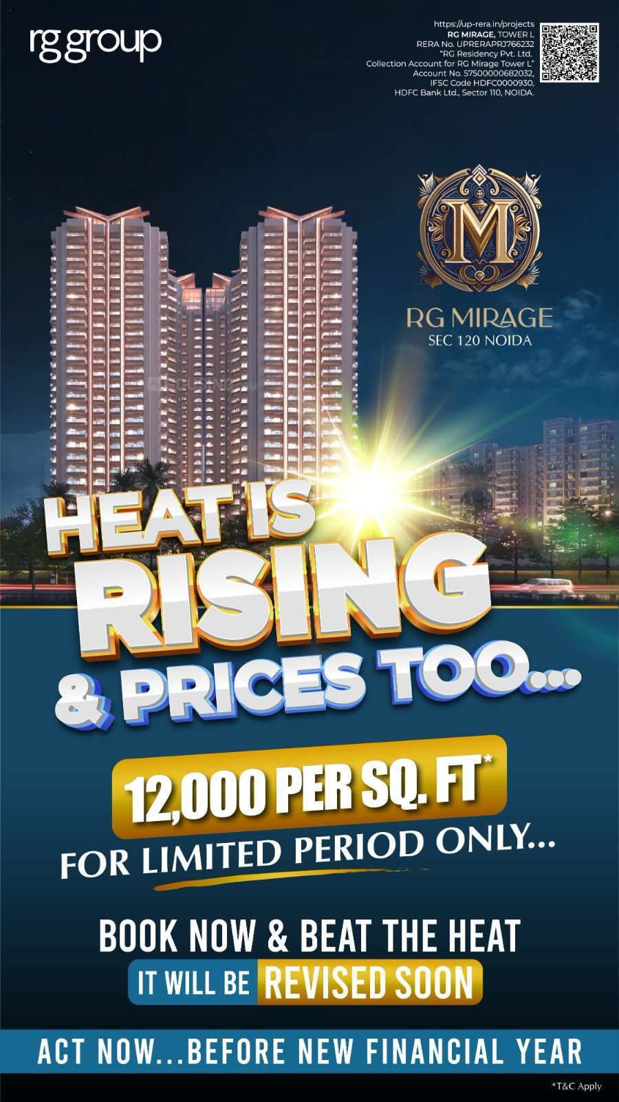 RG Mirage offers luxurious living spaces in Sector 120, Noida, featuring spacious 3 BHK and 4 BHK units with modern amenities. The project provides a variety of premium facilities, including free car parking, power backup, wardrobes, and modular kitchens. The strategic location and sophisticated design make RG Mirage an excellent choice for contemporary living.